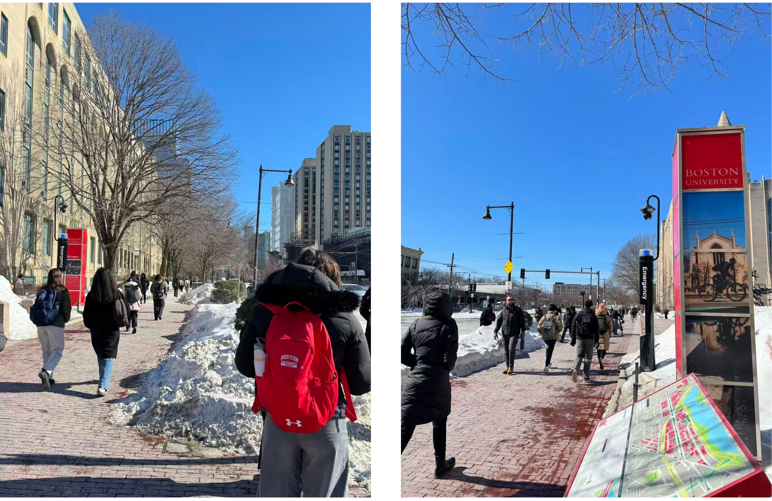 “Two weeks after the blizzard cancelled classes, campus doesn’t look “shut down” anymore. The sidewalks along Commonwealth Avenue are mostly clear, and the snow is no longer a problem for walking. But it hasn’t disappeared. It stays where the city doesn’t need it gone: along the grass, around tree trunks, and in small piles by the edges. After another light snow over the weekend, those patches look bright again in the sun. Students rush quickly as usual, earbuds blocking out the world as they cross at the lights and pass by each other, barely noticing the weather. Sunlight still reflects off the white parts, and for a second, it can feel softer than it looks in photos.”