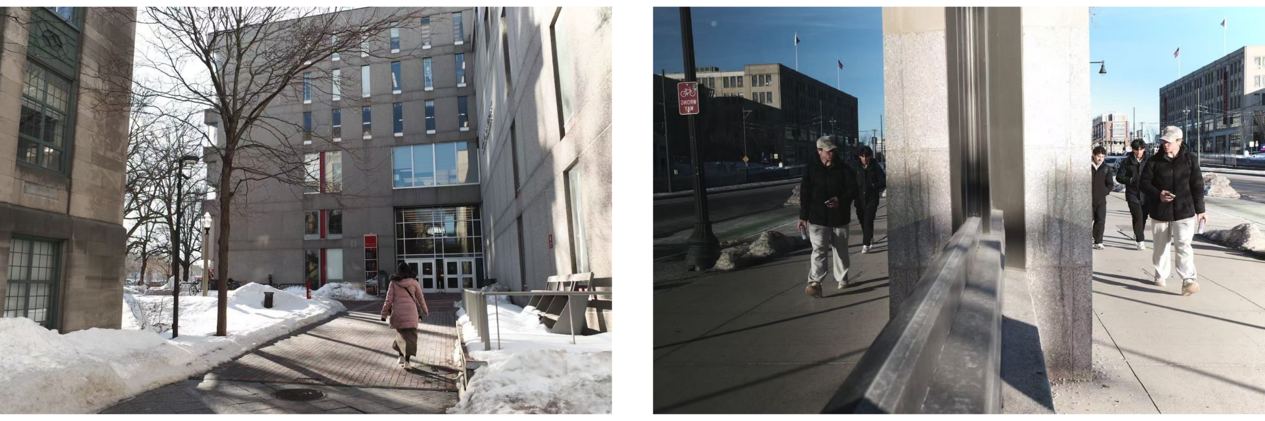 Wang’s photos pulled closer, or shifted the angle entirely. In one shot, a student’s posture and the snow behind them create visual tension that the words alone do not. In another shot, a student’s use of earbuds suddenly seems less like ordinary behavior and more like deliberate isolation from the world.