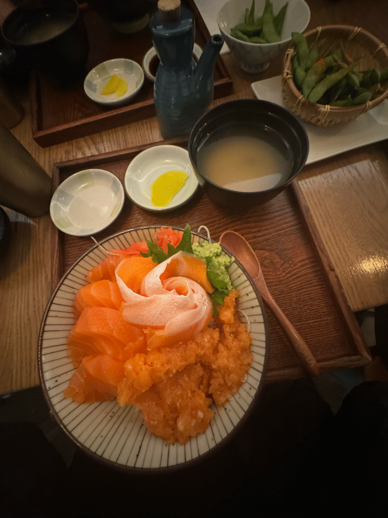 As you step inside, the noise of Chinatown fades away. The warm space is softly lit and feels calm, inviting, and relaxing – even when the restaurant is full. The atmosphere remains intimate even at its busiest hour. The Kaisen Don bowls feature buttery cuts of fish layered over perfectly seasoned rice. It’s the kind of meal that can make your weekend special.