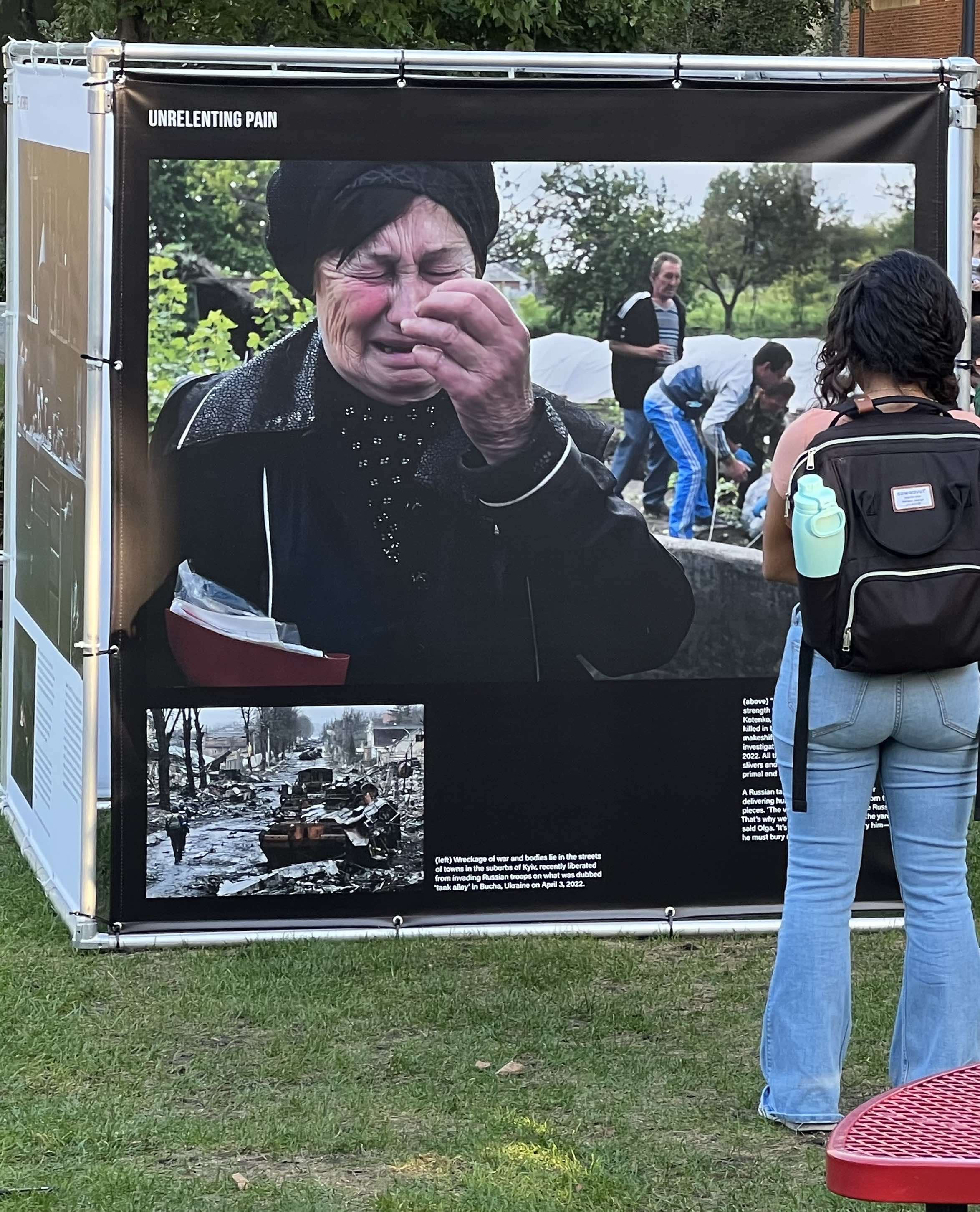 Until Nov. 6, Guzy’s photography from her assignment in Ukraine in 2022. will be displayed on the COM lawn. The photography exhibit, titled “Don’t Look Away,” features scenes from Ukraine shortly after the Russian invasion. Some of the photos depict grief, destruction, prayer, and children living in the warzone.