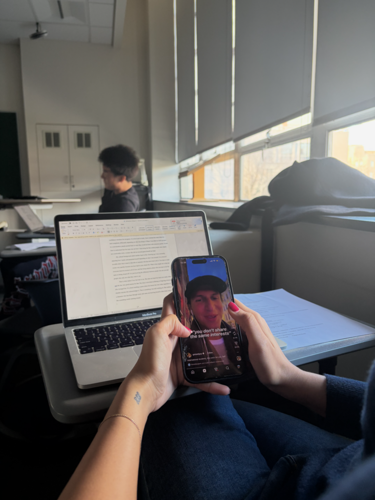 As an international relations major at BU, one thing I take pride in is being well-read. Previously, I spent hours diving into any given topic or reading and rereading material that helped me reach a flow state — until it didn’t. Suddenly, the hours I spent energized and laser focused on one specific thing were punctuated by hits of dopamine, where every scroll was frustratingly addictive. Soon, my classroom lectures were increasingly interrupted by The New York Times games and subtle peeks at my phone. I would catch myself and put it away only to return within several minutes.